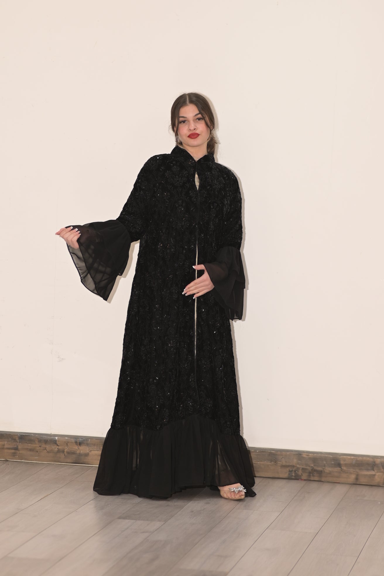 Royal black velvet embroidered abaya