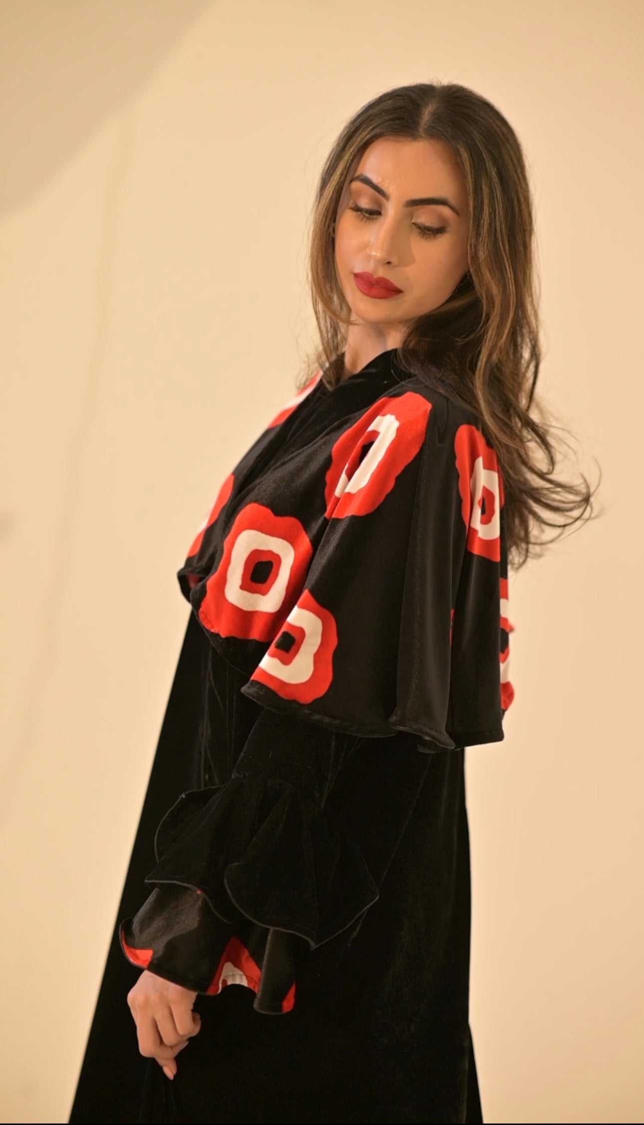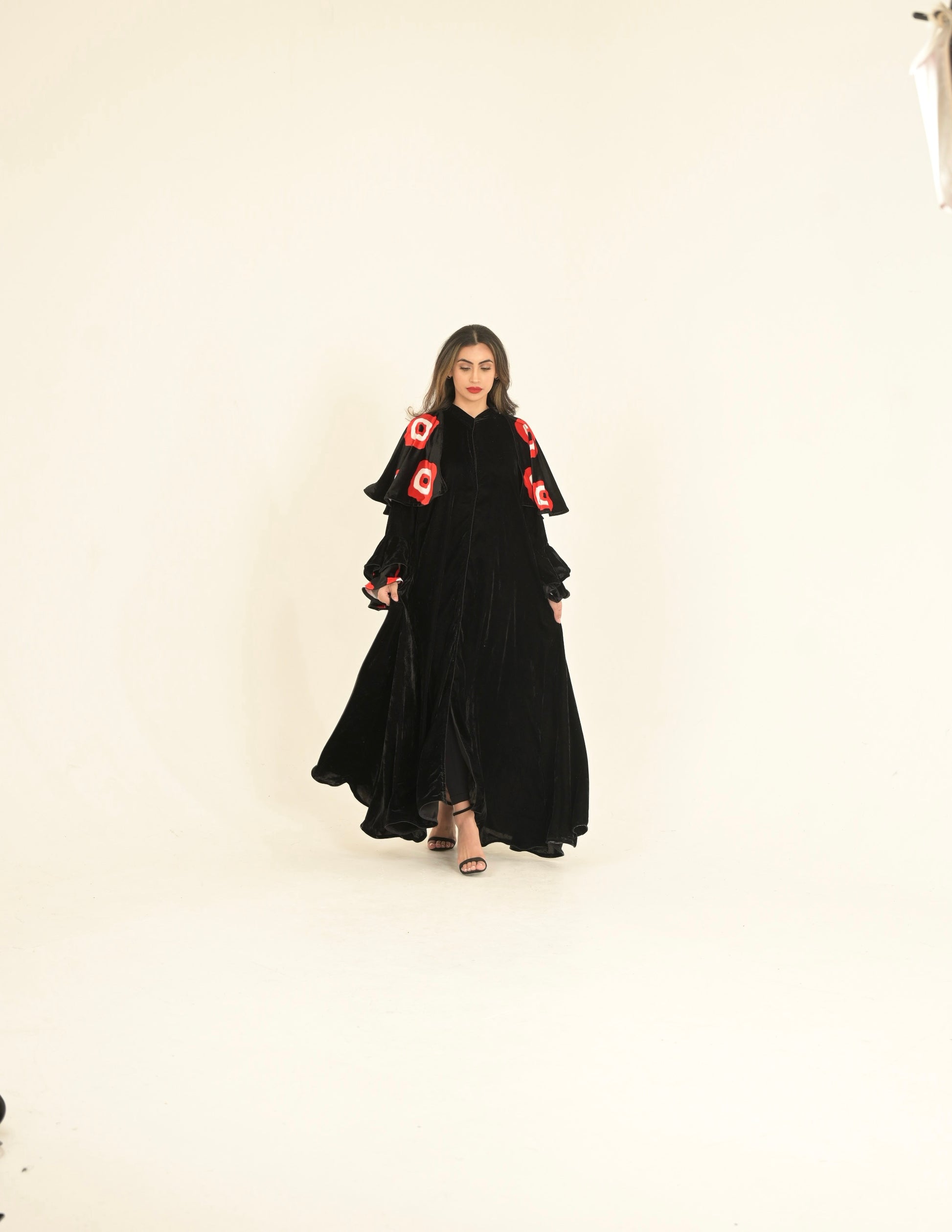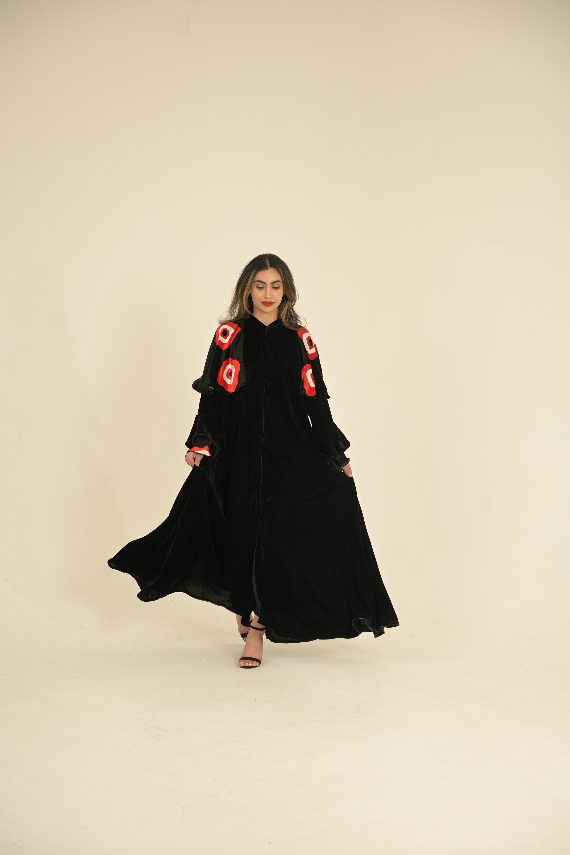 Black velvet Abaya with Yemeni traditional fabric