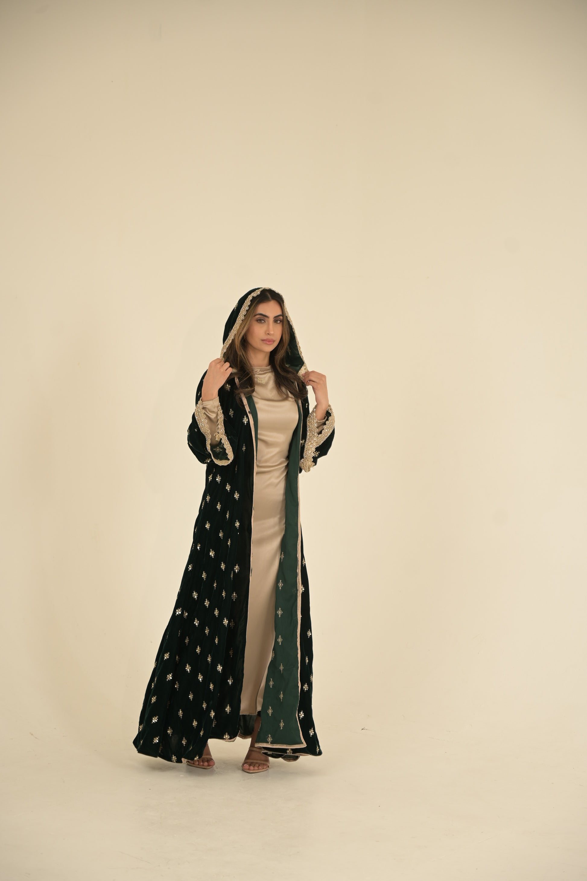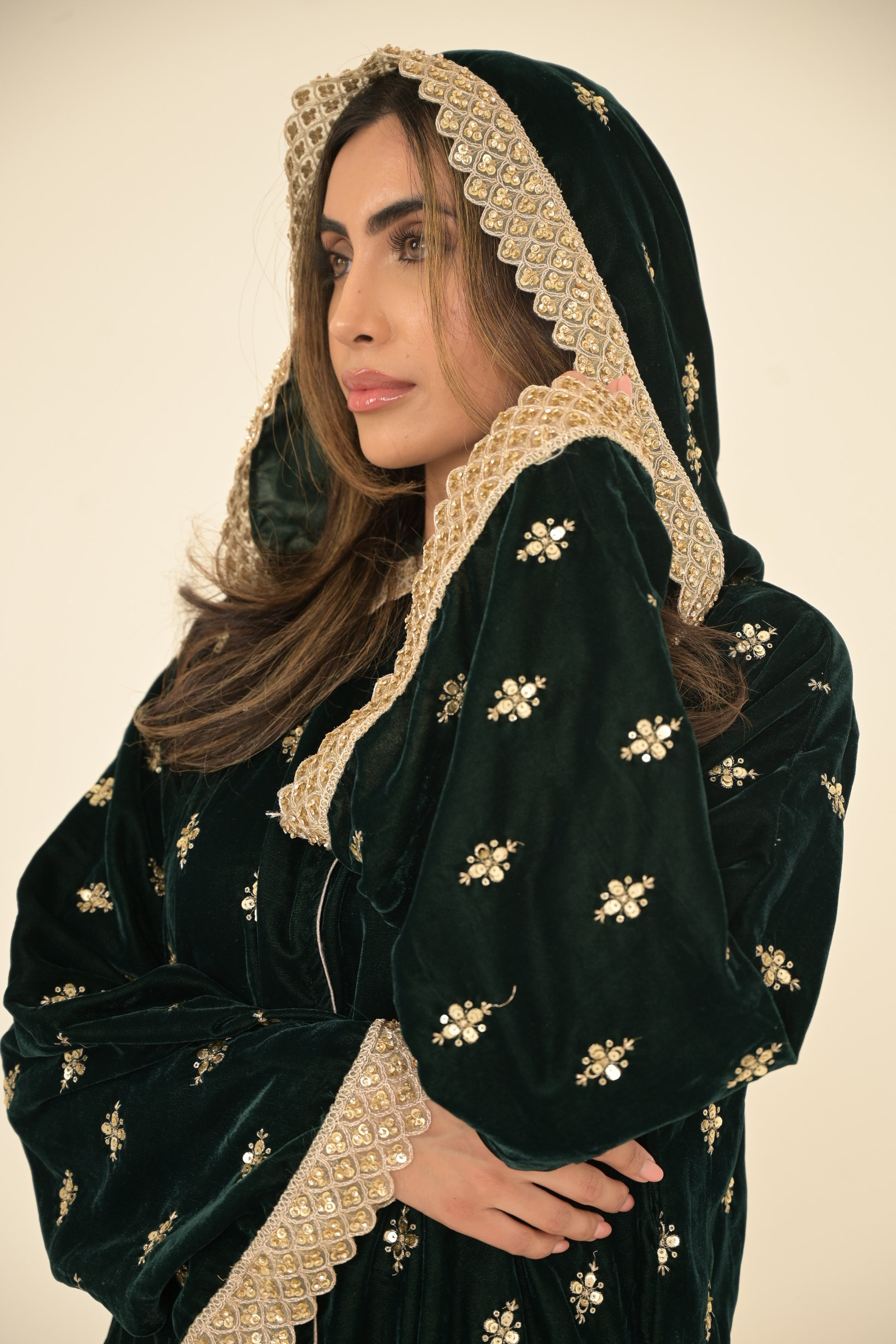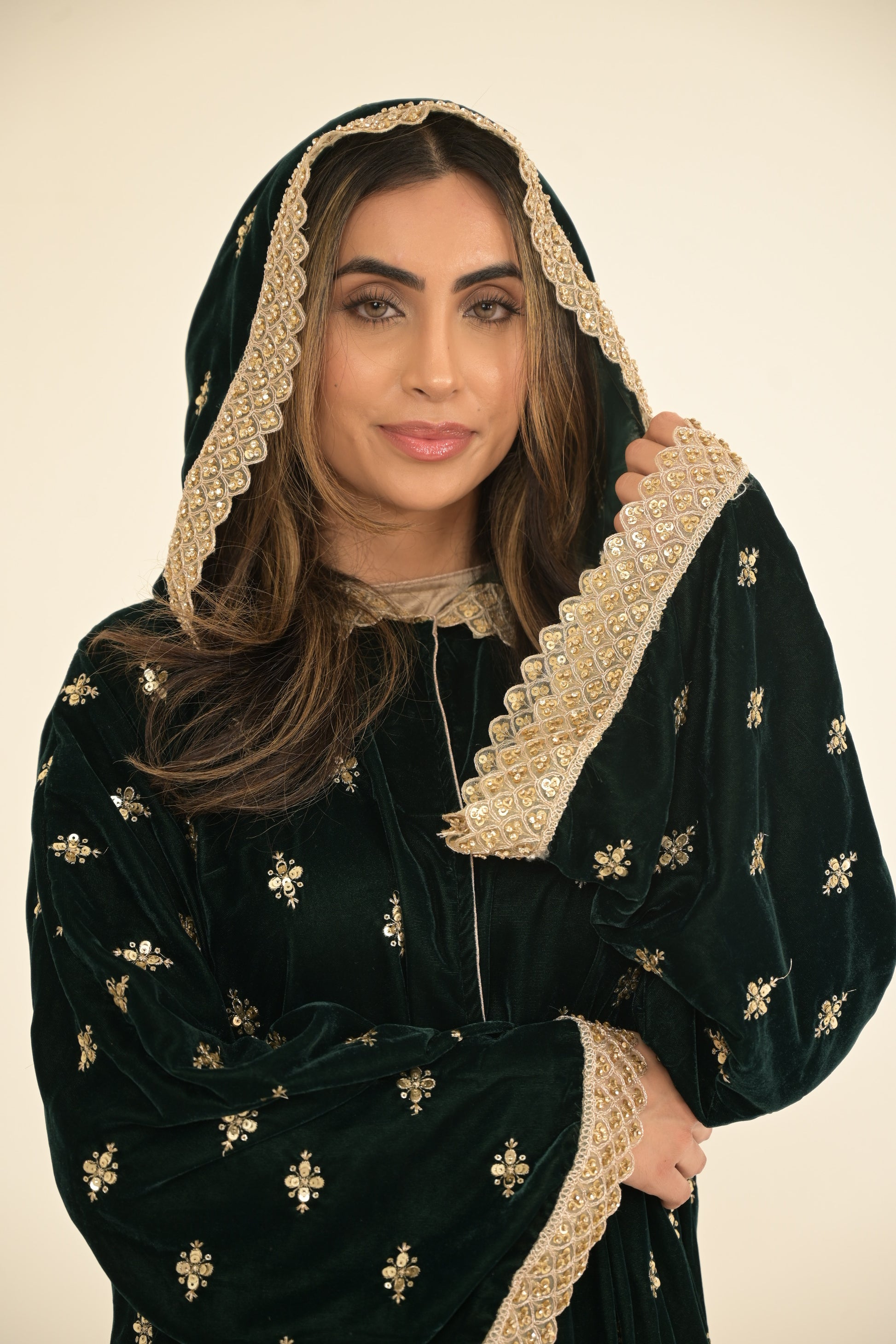 Royal Green with gold lace embroidered abaya 2 Pieces