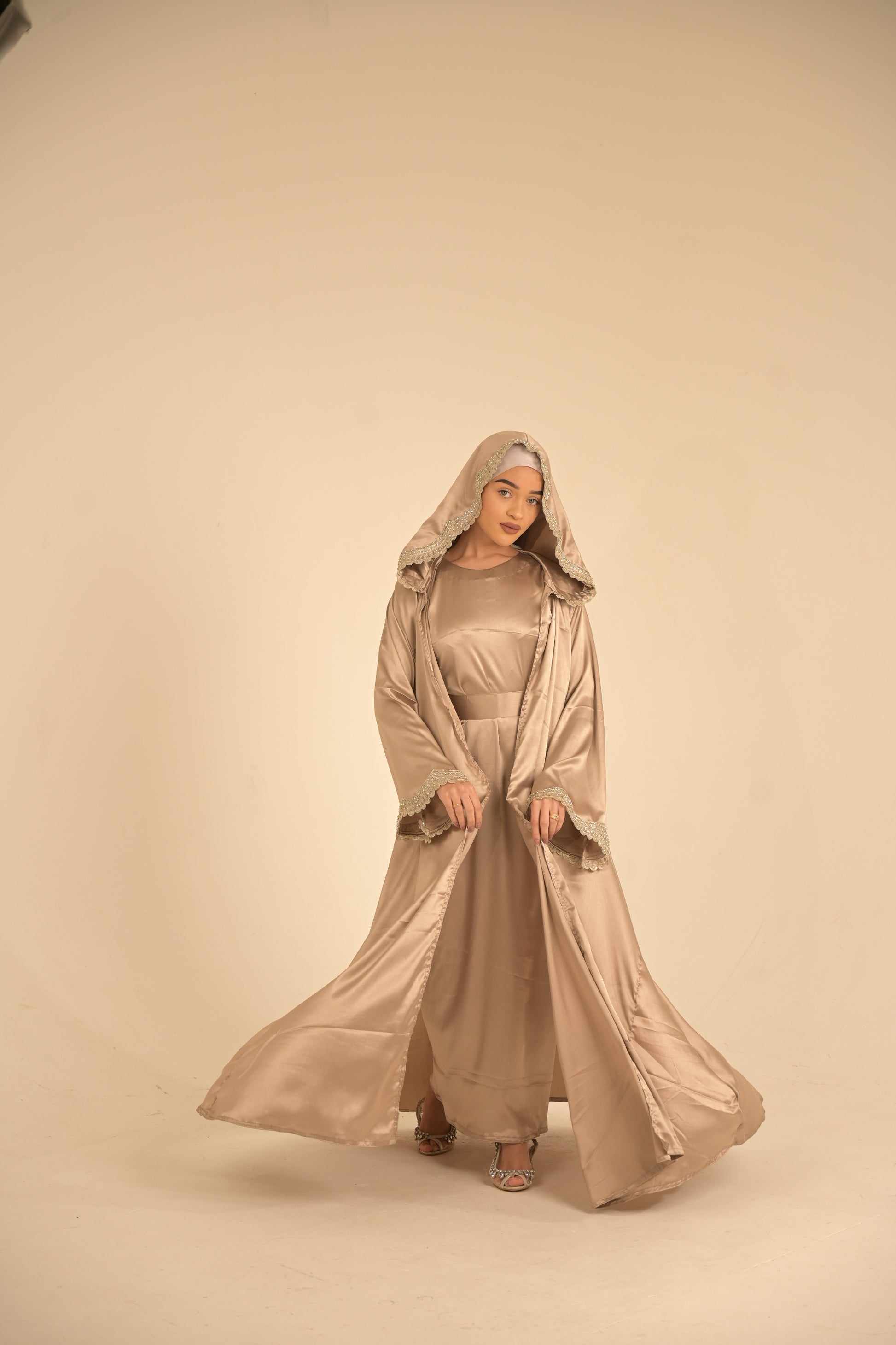 Two pieces silk hooded abaya